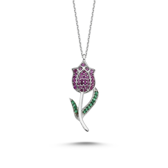 Gumus Taki Dunyasi Altin Kaplama Zirkon Tasli Lale Gumus Bayan Kolye