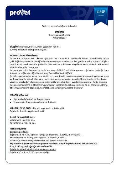 Sadece Hayvan Sagliginda Kullanilir Imozan Enjeksiyonluk